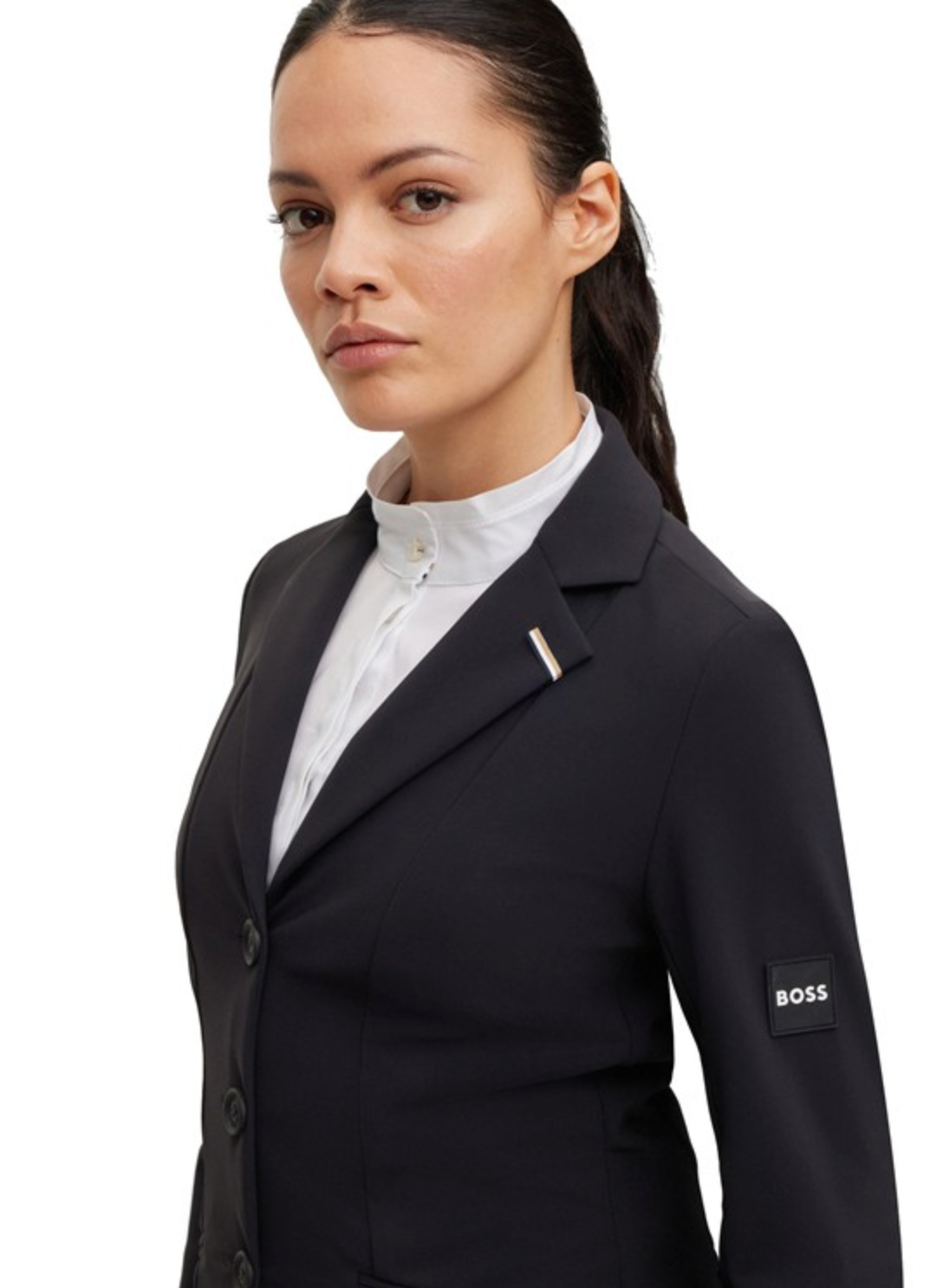 Vartalonmyötäinen kilpailutakki, joka on valmistettu powerstretch-kankaasta. Takissa on erottuvia yksityiskohtia, kuten Bossin tunnusomaiset raidat ja kontrastivärinen logo. Takissa on kapea leikkaus, jossa on teretaskut ja kaksi tuuletusaukkoa takana. Takki on myös paukkuliivien kanssa yhteensopiva, mikä lisää turvallisuutta kilpailun aikana.