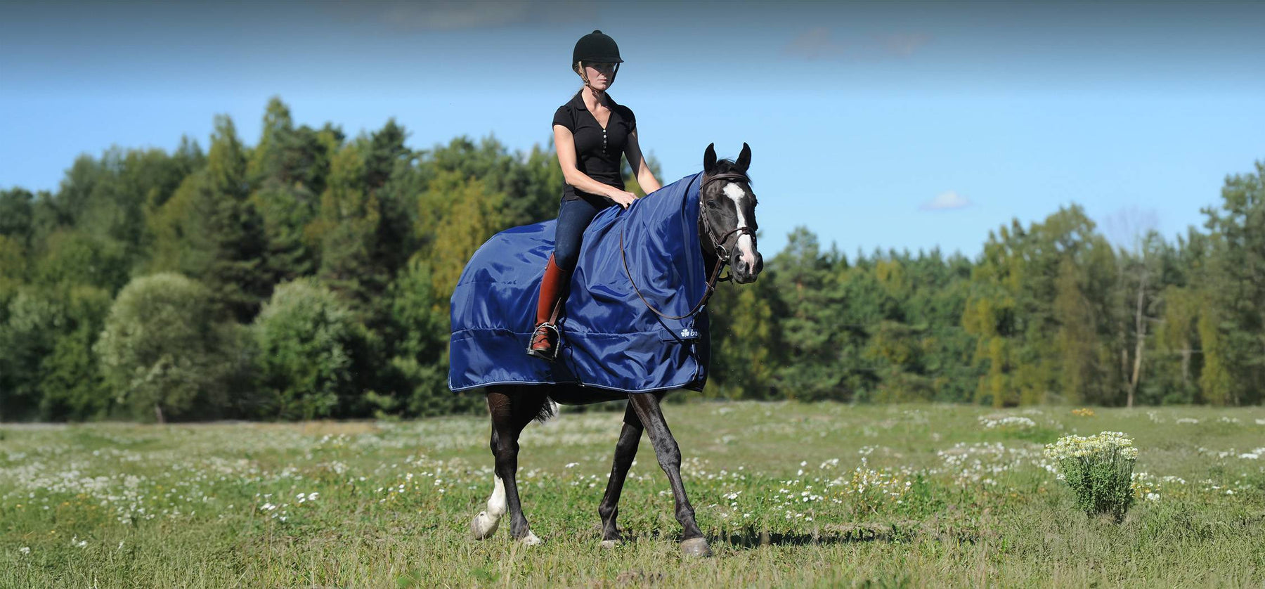 Vedenpitävä, hengittävä ja kevyt kangas on suunniteltu pitämään hevosen ja varusteet kuivina sadesäällä.