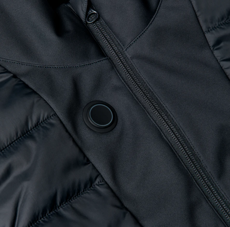 • Se käyttää power bankia (joka säilytetään sisätaskussa) ja siinä on yksinkertainen KL-virta-nappi kolmen esiasetetun lämpötilan vaihtamiseen.