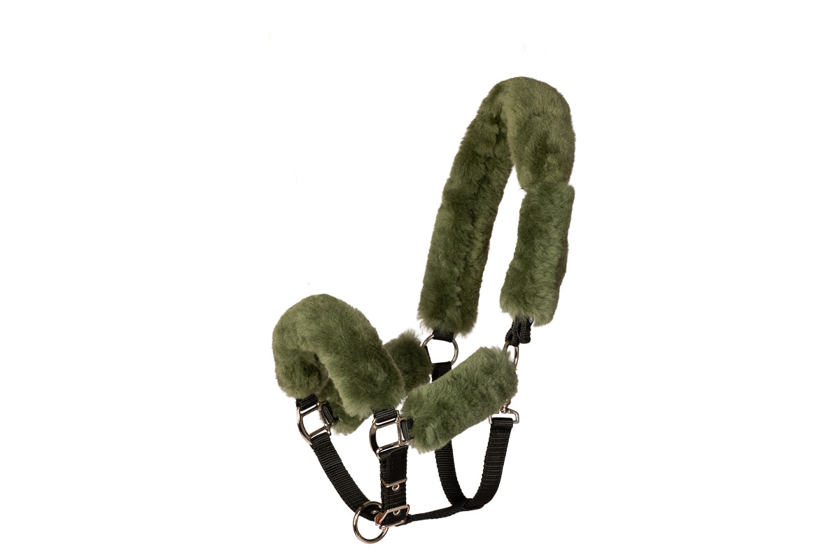 Mattesin lampaankarvariimu, jossa on 4 lampaankarvapalaa. Turparemmissa, niskahihnassa sekä poskissa on lampaankarvapehmusteet. Leuan alta menevissä remmeissä ei ole lampaankarvaa. Riimun mukana tulee yhteensopiva riimunnaru.